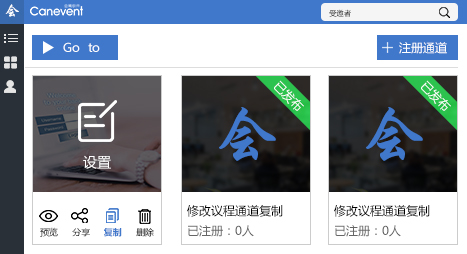 在你完成一次注册报名通道制作后,你可以直接点选复制,多次亦可,再进行简单编辑,添选删减新通道所需字段,最后重命名,多条注册报名通道即刻建立。这在很大程度上节约了时间成本,提高效率。