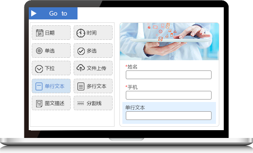 系统已提供所有排版制作所需字段,灵活运用即可展现百般个性,你只需要将左侧字段拖拽至工作区进行简单编辑,例如添加个下拉菜单,点击所选就可在编辑框进行多选添加。另外,字段中的日期以及时间都会自动调整。
