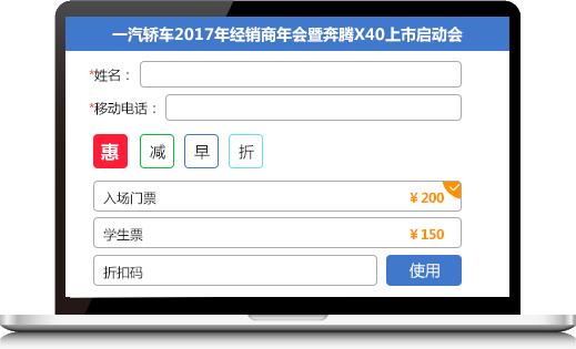 主办方可以自主制定会议活动的促销代码/优惠券等激励注册参会的项目,包括自定义所有优惠项的奖励规则、参会人获得优惠的筛选条件、会议优惠活动的截止日期以及对优惠的规模加以限制,还可设置给组团注册自动按照数量进行打折