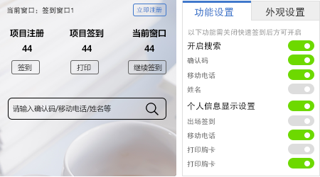 会腾签到系统除了满足一般的快速签到外,强大的签到设置功能还可以让主办方在签到的同时进行平账缴费,打印胸卡等。支持手机、扫枪、电脑等多种签到设备,无需专业知识,简单易用。